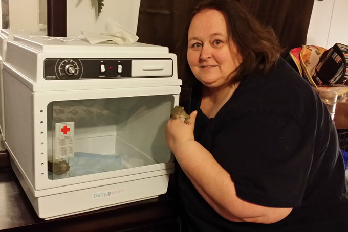 Beth has cared for animals all of her life but in 2009 her life changed when she became disabled. Unable to work and battling depression, an orphaned fawn arrived to change everything. Before long Beth was also caring for orphaned baby squirrels and other small mammals who needed her help. She found "the best mentor in the world", applied for her permit, and now cares for about 30 animals each year, mostly babies. She says that the animals helped her get her life back. We're sure the animals feel the same way about meeting Beth.